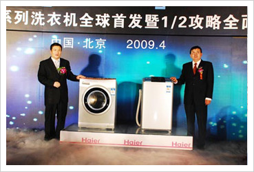 2009年4月22日,海尔洗衣机在京举行了一场主题为“绿色净界,芯动未来”--海尔静音系列洗衣机全球首发暨1/2攻略全面启动发布会。会上,海尔洗衣机全球同步发布了28款静音产品,也标志着海尔洗衣机1/2攻略的全面启动。