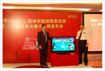 NBA作为一种“运动+娱乐”品牌,也看好这个平台,尤其是健身娱乐模卡中的篮球等娱乐运动形式。借助此次NBA海尔篮球学院训练营开营启动仪式,联合召开发布会,更好地体现了NBA的运动精神。