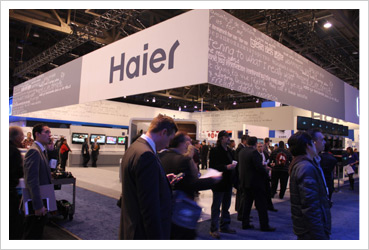 报道中说:“作为仅有的一家连续10年入驻展会中央展厅的中国民族品牌,海尔集团此次携全球首台不用电源线、信号线、网络线的‘无尾电视’亮相,标志着全球彩电行业从此跨入‘无尾’(完全无线)时代。中国海尔集团已在美国设厂生产家电,在美国的家电商场内,海尔标牌的商品也正逐渐增多。”