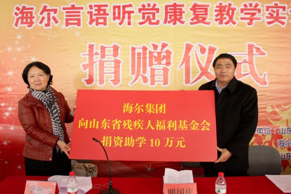 海尔集团历来重视社会慈善公益事业,此次海尔集团捐赠教学实验室,主要用于听力康复专业(听障方向)学生的实践课教学和实验。今后海尔集团将继续支持我省的残疾人事业,为构建社会主义和谐社会作贡献。