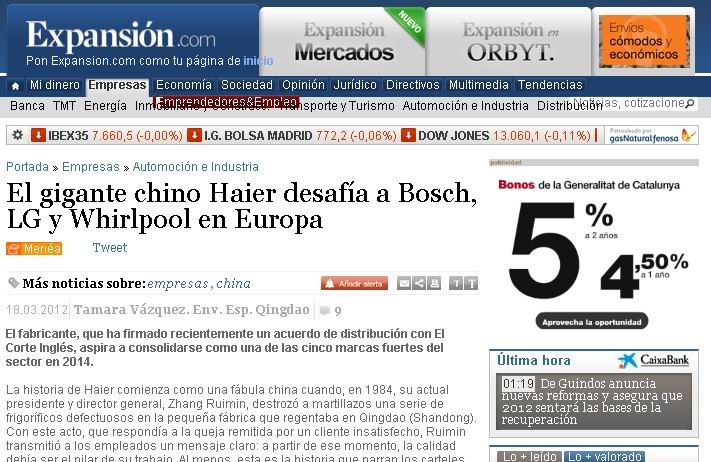 首页新闻资讯 《西班牙拓展报》:海尔跨越式发展对欧洲老牌巨头造成冲击