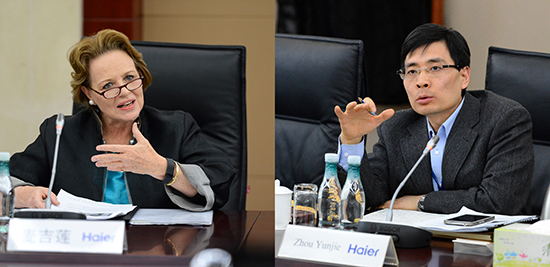 (左图:联合国儿童基金会驻华代表麦吉莲女士 右图:海尔集团轮值总裁兼董事局副主席周云杰先生)
