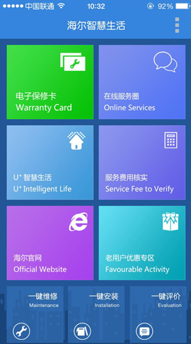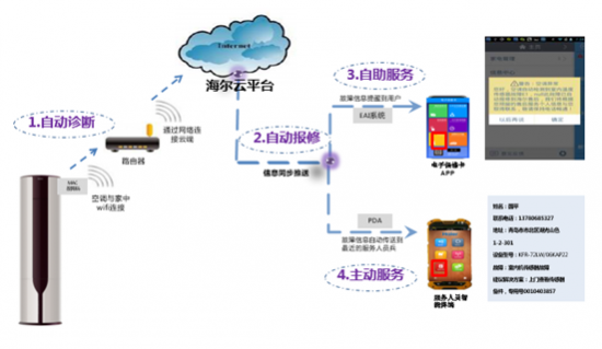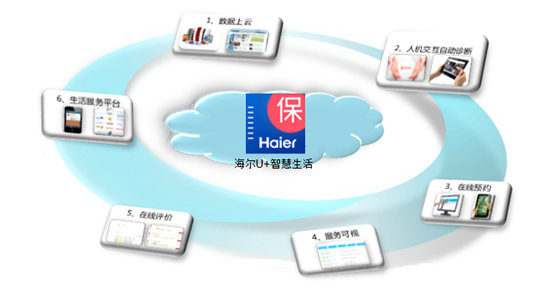 海尔智联u+服务模式是在云数据的支持下,用户可通过全新推出的海尔“U+智慧生活APP”,实现智能家电的自动诊断、主动服务、自助服务,这意味着一旦家电出现异常,APP将自动提醒用户,用户由被动变主动。如:当冰箱温度异常时,APP会提醒用户查看是否忘记关冰箱门,如果确实需要服务人员帮助,则无需用户电话,服务人员就会主动上门服务。