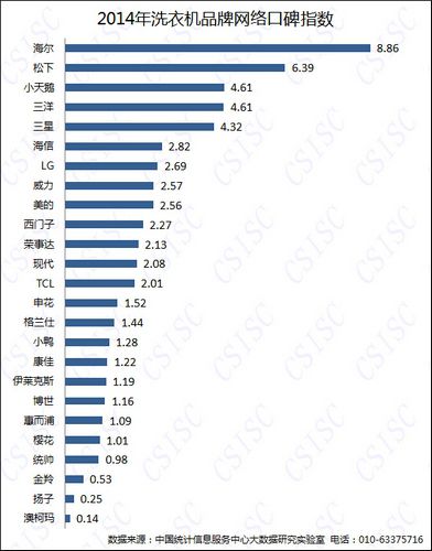 近日中国统计信息服务中心(CSISC)联合中国质量新闻网发布《2014年度洗衣机品牌口碑报告》,千龙网·中国首都网北京媒体独家授权发布。