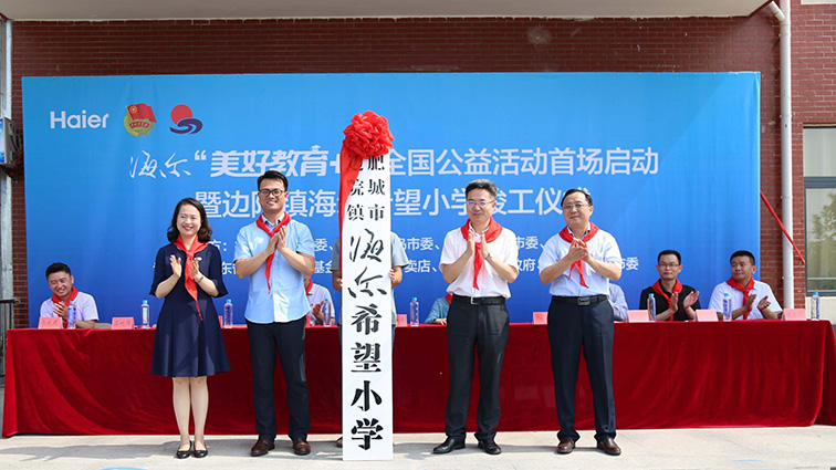 6月20日上午,以“美好教育:助力儿童健康成长”为主题的海尔“美好教育+”全国公益活动首场启动暨边院镇海尔希望小学竣工仪式在泰安肥城边院镇济河海尔希望小学举行。仪式现场,海尔集团向山东省青少年发展基金会捐款600万元,至此海尔集团向希望工程累计捐款突破一亿元。自1995年开始,海尔集团已累计援建希望学校266所,覆盖全国26个省、直辖市、自治区,是团中央希望工程中援建希望学校最多的中国企业。海尔累计援建款数正式超过一亿元。