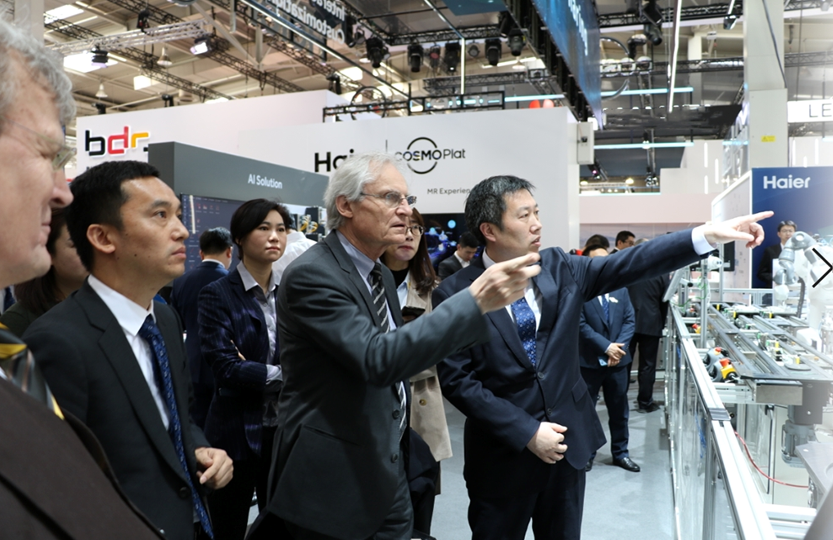 “令人高兴的是,我每年都来参观海尔的展台,每次都能看到新的进步。”德国工业4.0之父、德国工程院董事会主席孔翰宁博士在听完介绍后表示,对海尔推出的智能+5G大规模定制验证平台印象深刻,尤其是运用了5G、人工智能等先进技术,提供了很多解决方案与工业应用。同时,他对建陶、农业、服装等跨行业跨领域生态赋能与增值分享给予充分的肯定,他说:“海尔不是只为大企业服务,而是赋能中小企业转型升级,这点特别值得赞赏。”